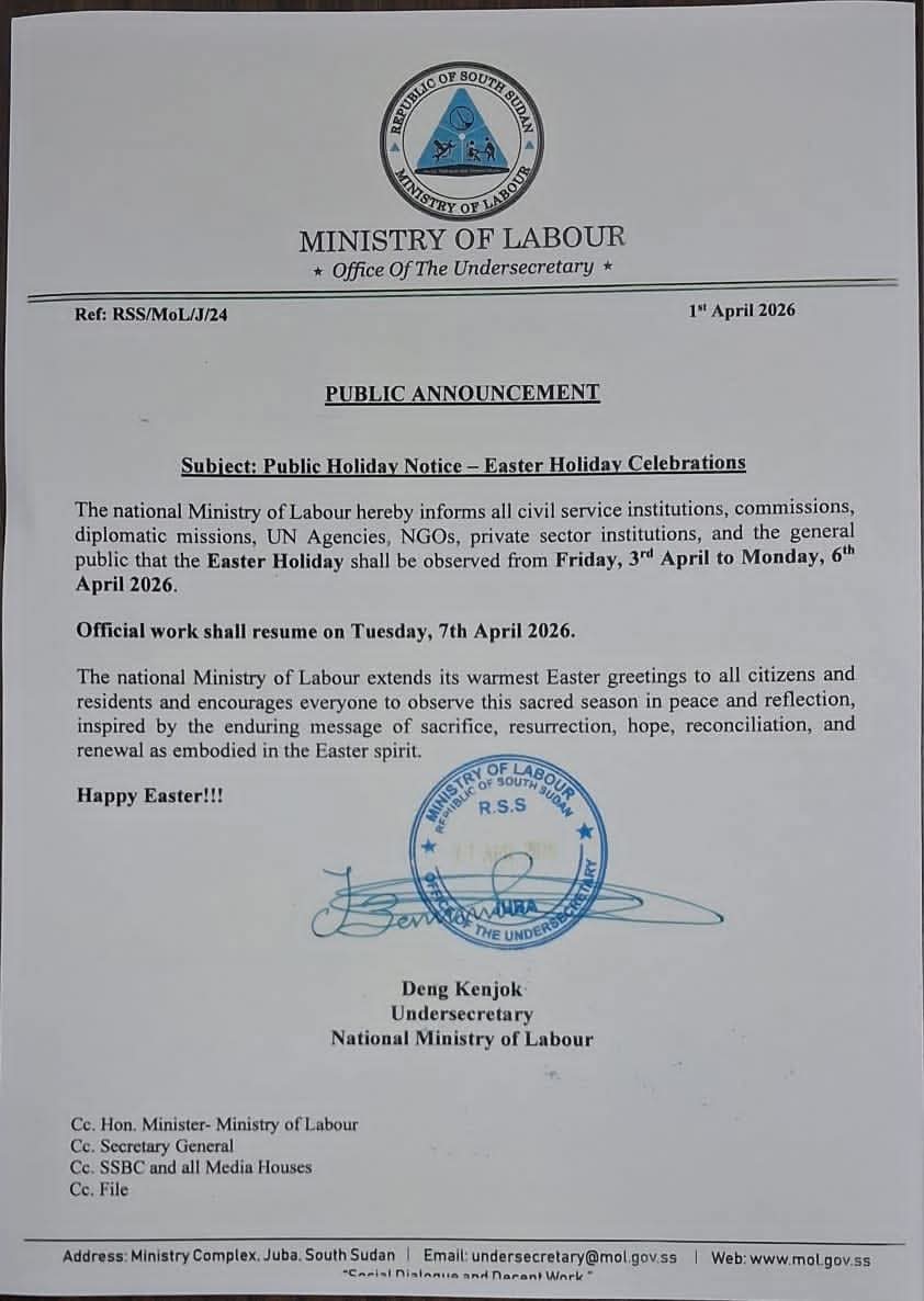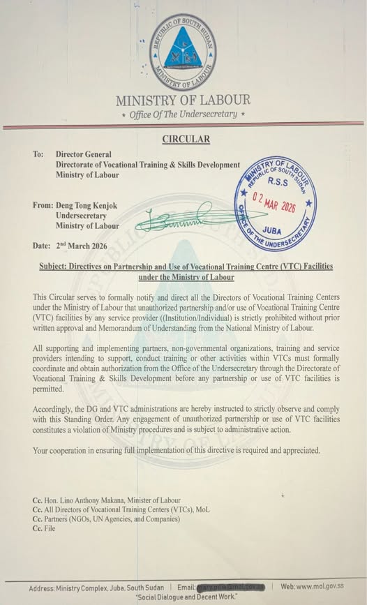 The Ministry of Labour was established in October 2005 following the signing of the Comprehensive Peace Agreement, and in accordance with the Sothern Sudan Interim Constitution, 2005. The Ministry’s mandate is derived from the Transitional Constitution of The Republic of South Sudan 2011, Article 138 and 139, Presidential Decrees of 26th June 2006 and 29th July 2009, and The Public Service Act 2011, Article 8. The Ministry’s mandate (is to establish an inclusive, impartial, responsive, and efficiently regulate the operations of the Private Sector labour market in a manner consistent with national priorities, values, and cost-effective service delivery) is to build and manage the capacity of the RSS Public Service for effective and efficient delivery of services and support, and where necessary regulate the operations of the Private Sector labour market.